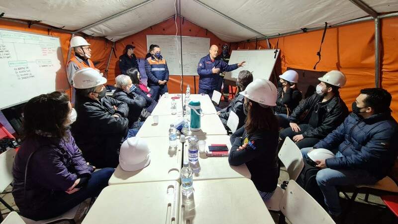 Os engenheiros também foram apresentados às equipes de operação e fizeram um reconhecimento da área de escombros no prédio. A partir de agora, os trabalhos terão sequência de forma contínua com avaliações estruturais a cada passo para avançar na remoção de material do perímetro delimitado pela indicação das equipes de binômios (quatro duplas de bombeiro militar e cão de resgate).