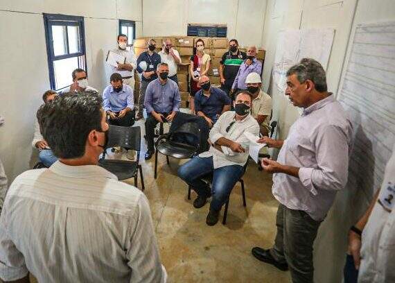 Melo e Gomes (sentado, ao lado do prefeito) reuniram-se com representantes do consórcio, secretários e técnicos.