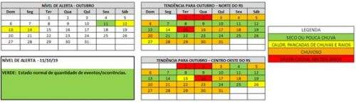 Abaixo, as previsões para o mês de outubro divididas por região e, logo abaixo, a legenda das cores: