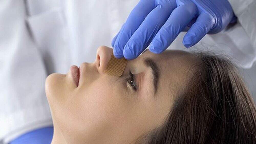 Após o procedimento, o paciente fica com uma espécie de gesso e tampão internos para dar sustentação ao nariz por, aproximadamente, uma semana.