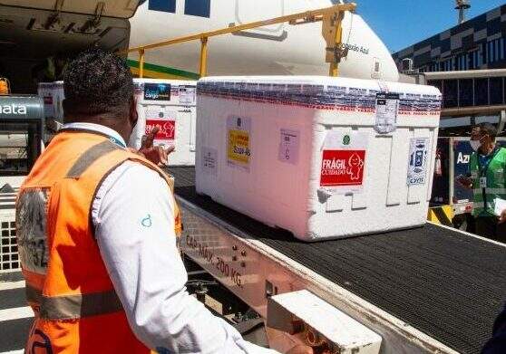 Desta vez, a remessa é composta de unidades da vacina produzida pela Universidade de Oxford (Reino Unido) em colaboração com o laboratório europeu Astrazeneca, e que no Brasil conta com a parceria da Fundação Oswaldo Cruz (Fiocruz), do Rio de Janeiro.