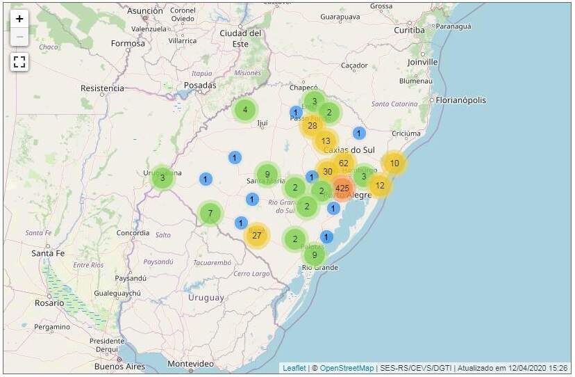 Os novos infectados estão em Porto Alegre (3 casos), Cidreira, Encruzilhada do Sul, Estrela, Imbé, Novo Hamburgo, Rio Grande, São Domingos do Sul e Veranópolis.