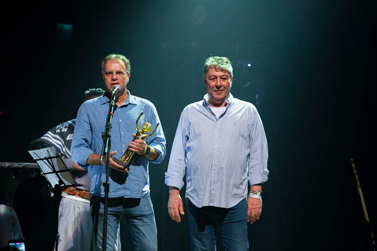 Foto: Édson FilhoA Rio Grande Seguros e Previdência foi a empresa agraciada com o Prêmio Ayrton dos Anjos – Patineti 2025. A distinção na categoria “Empresa gaúcha que impulsionou a cultura”, que foi recebida pelo presidente da seguradora, César Saut, e entregue pelo presidente do Banrisul, Fernando Lemos, ocorreu no auditório Araújo Vianna, em Porto Alegre, durante o show “O Grande Encontro – Música dos Gaúchos, que encerrou a turnê “Reconstruindo o Rio Grande”.