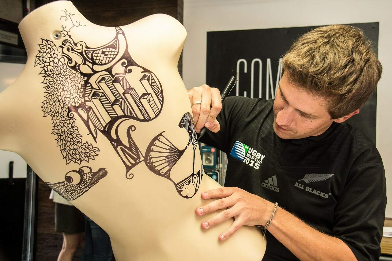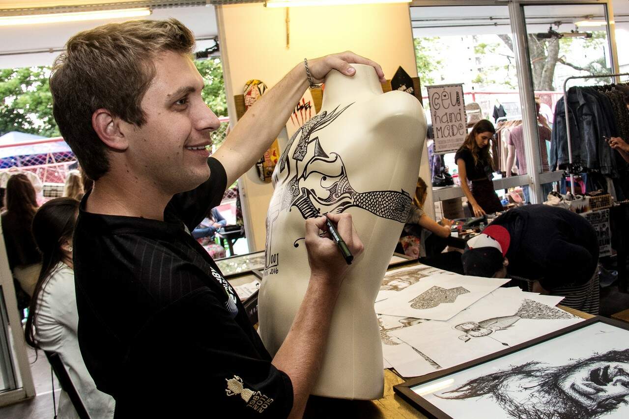 Ele levou suas tintas e criatividade para a feira, na qual realizou demonstrações artísticas ao vivo em diversos e surpreendentes materiais, como manequins. (Foto: Jackson Ciceri/O Sul)