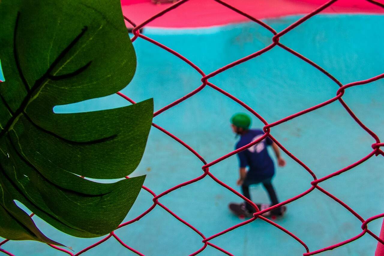 No detalhe: o skatista, surfando a sua onda urbana na pista de concreto do Complex. (Foto: Jackson Ciceri/O Sul)