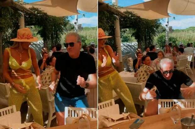 Celebridades Roberto Justus vai até o chão em “almoço balada” com Ana Paula Siebert em Saint-Tropez