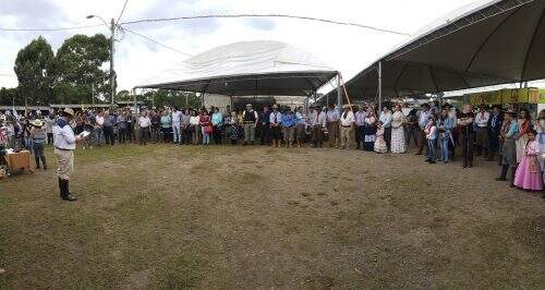 Na manhã deste sábado ocorreu a cerimonia oficial de abertura do evento, com a presença de autoridades que em seus discursos enalteceram a importância da cultura gaúcha, do quanto a mesma é forte e incentivada em Canela e também a garra da patronagem do CTG Querência, em manter o Parque de Rodeios e promover este rodeio, um dos maiores do Estado. Foi também homenageado o ex-patrão do CTG Querência Arnaldo Tramontin, que emprestou seu nome a Taça Cidade de Canela. Tramontin recebeu a pela sua dedicação a entidade, nas 3 gestões em que esteve com as rédeas do CTG. A patronagem aproveitou a oportunidade para homenagear, entregando um lenço branco, ao Prefeito Constantino Orsolin, ao Presidente da Casa Legislativa Marcelo Savi, a Brigada Militar representada pelo Comandante da Cia de Canela Capitão Jorge Mascarin, e para o Corpo de Bombeiros de Canela, representada pelo Segundo Sargento Moura, representando o comandante Miguel Oliveira de Souza, que sempre apoiam o evento. Crianças a cavalo empunharam as bandeiras e o hino rio-grandense foi um show a parte, com os talentosos músicos canelenses Emílio Fogaça e Bruno Hauber.