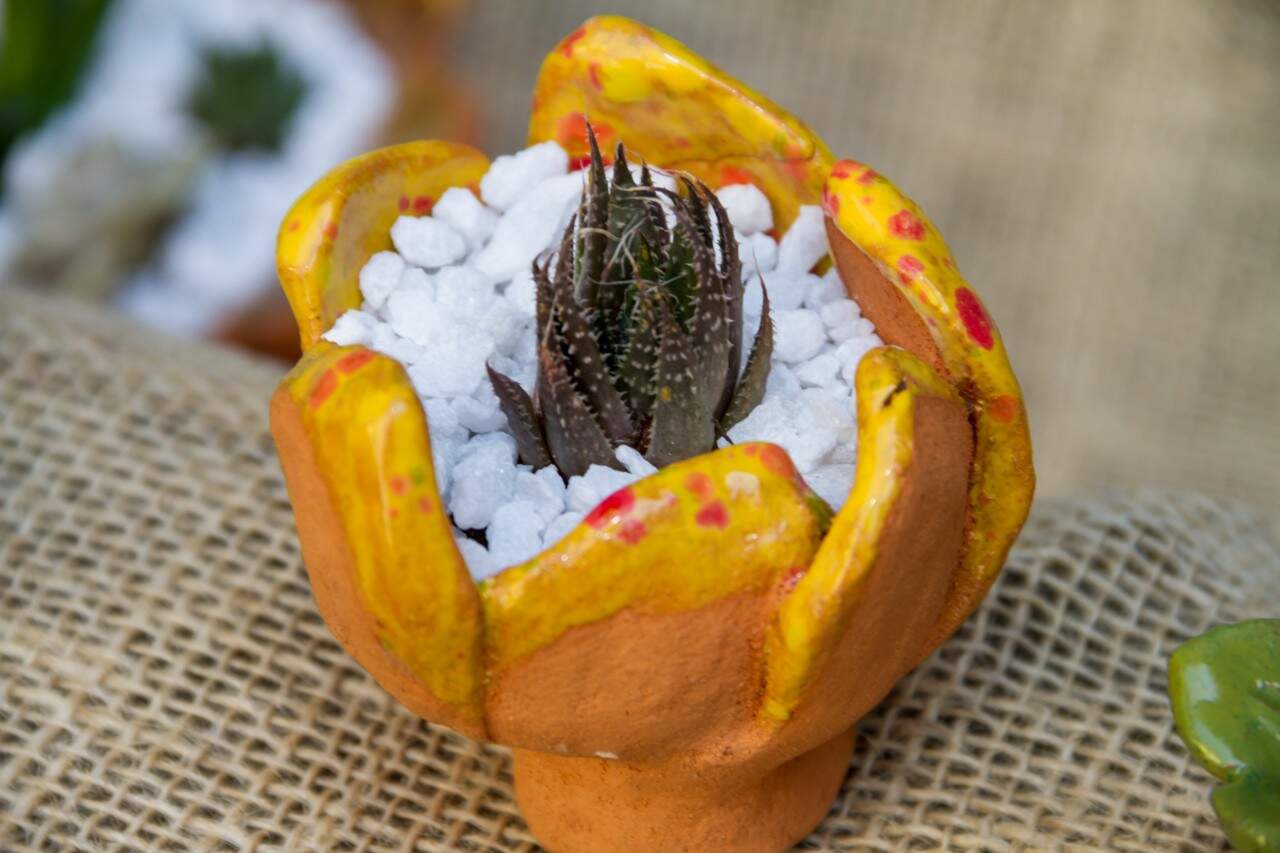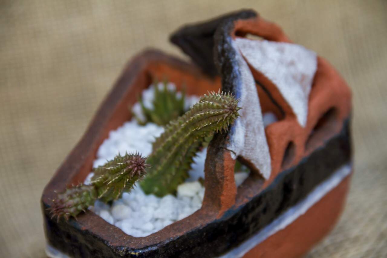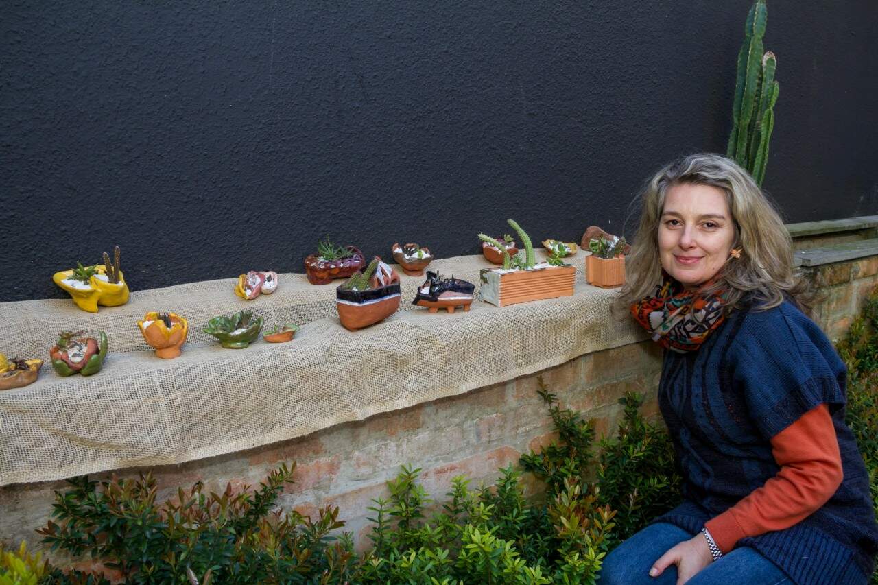 Pequenos cactos enfeitam as obras de Silvia Franz Marcuzzo. (Foto: Pedro Antonio Heinrich/especial)