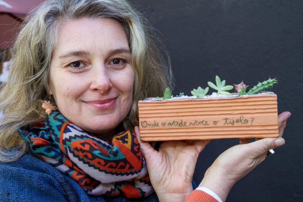 No detalhe: a frase questionadora “Onde o tijolo vence o verde?”. (Foto: Pedro Antonio Heinrich/especial)