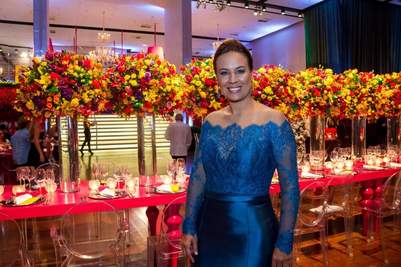 Flávia Magalhães optou por um vestido azul para receber com a família. (Foto: Pedro Antonio Heinrich/especial)