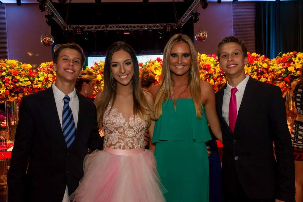 Valentina Magalhães, na foto com Victoria de Kroes Leal e os irmãos, Ricardo Leal e Eduardo Leal, comemorou os seus 15 anos com os amigos na Casa NTX. (Foto: Pedro Antonio Heinrich/especial)