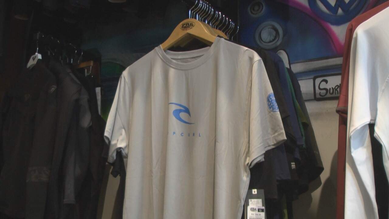 “A gente tem as nossas blusas de lycra, tanto manga longa como manga curta. Todas elas são fator 50 para mais. Os preços variam de R$ 109 a R$ 300, depende muito da marca. Nós vendemos em torno de 400 a 500 peças com proteção UV por mês”, disse a vendedora Samanta Bittencourt.