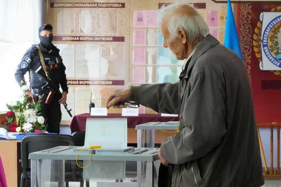 Volodimir Saldo, um ucraniano que trocou de lado para se tornar o chefe da autoridade de ocupação na região de Kherson, disse que a votação foi tranquila e as pessoas estavam participando com “entusiasmo”.