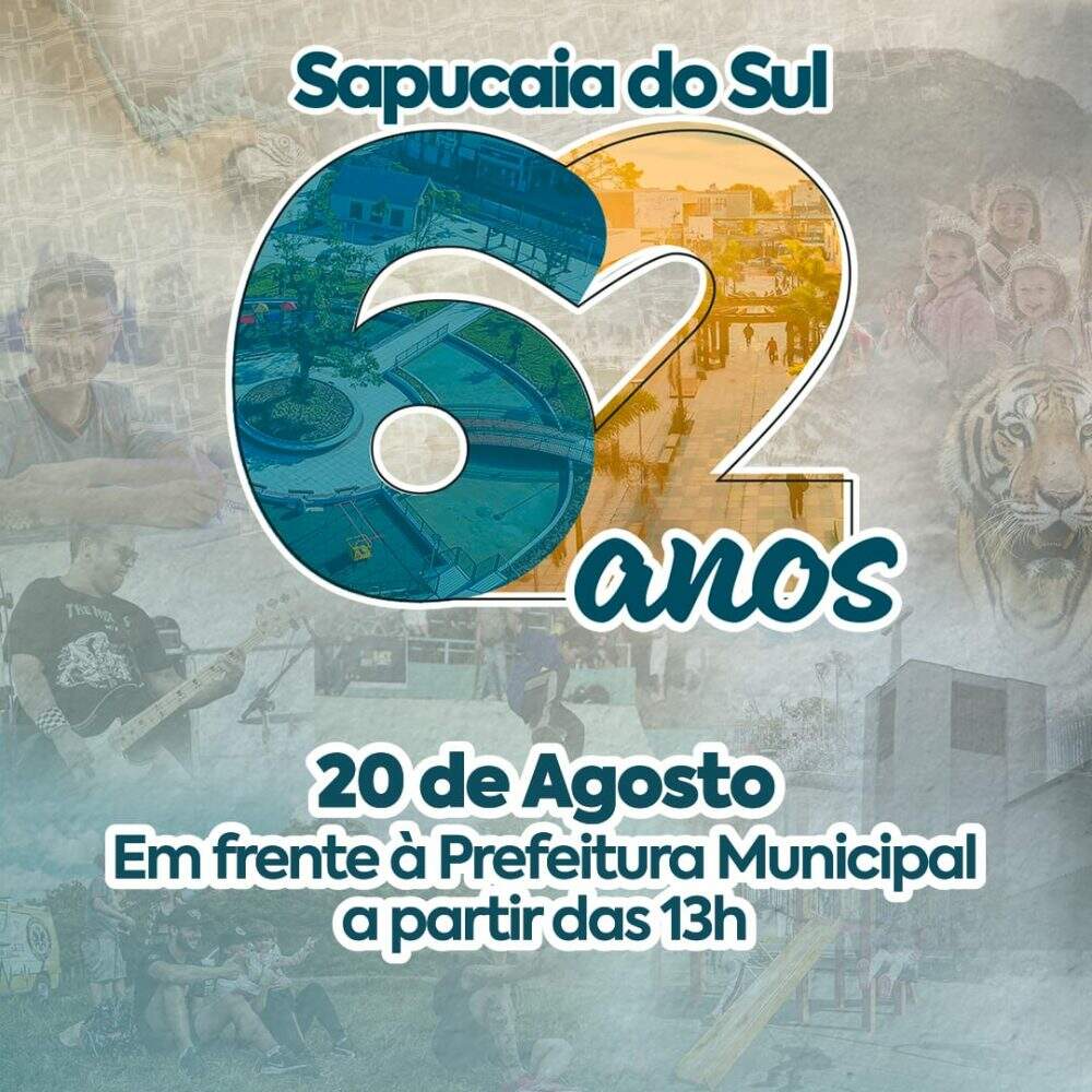 A prefeitura de Sapucaia do Sul, através da Secretaria de Cultura e Turismo, comemora 62 anos de emancipação mo próximo domingo (20). Entre as atrações para a comunidade, diversas apresentações artísticas, brinquedos infláveis e muito mais.