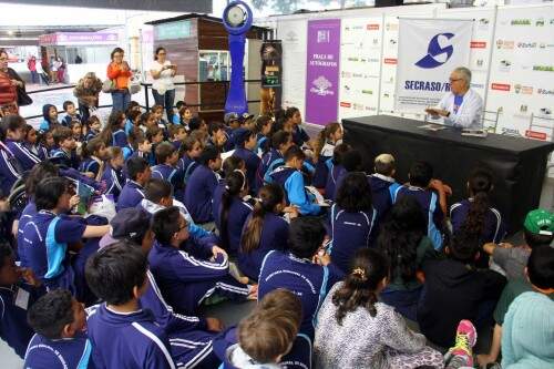 Porto Alegre – Escritores Luiz Coronel e Angélica Rizzi, assinam suas obras para o público infantil, na Feira do Livro 2015 – Jackson Ciceri