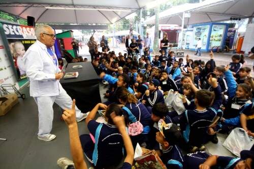 Porto Alegre – Escritores Luiz Coronel e Angélica Rizzi, assinam suas obras para o público infantil, na Feira do Livro 2015 – Jackson Ciceri