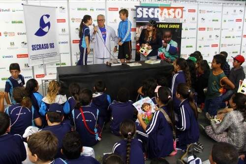 Porto Alegre – Escritores Luiz Coronel e Angélica Rizzi, assinam suas obras para o público infantil, na Feira do Livro 2015 – Jackson Ciceri