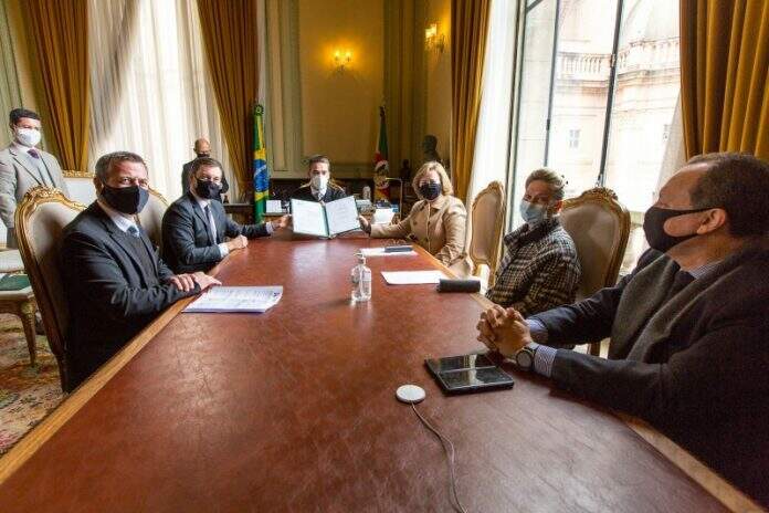 O termo de cooperação foi assinado pelo governador Eduardo Leite, pelo procurador-geral de Justiça, Fabiano Dallazen, e pela secretária Silvana Covatti.