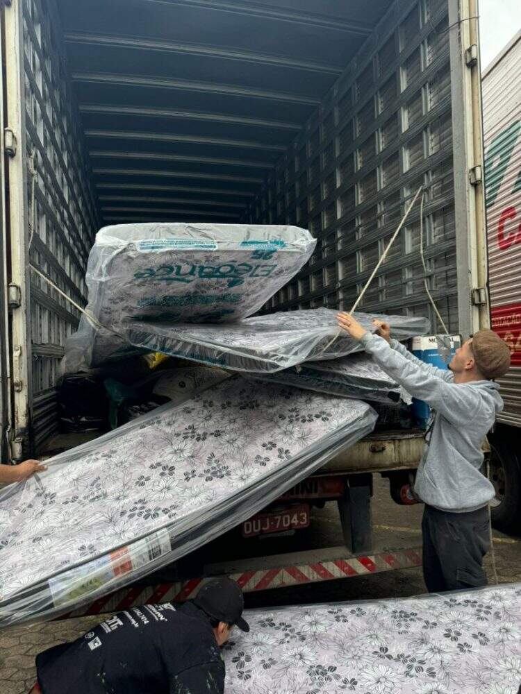 A Secretaria de Desenvolvimento Econômico (Sedec), representando o governo do Rio Grande do Sul, recebeu doações enviadas pela empresa baiana de combustível Larco. A entrega dos produtos teve a parceria da empresa mineira Patrus Transportes e aconteceu nesta segunda-feira (3), na Sociedade Libanesa. Colchões, cobertores, kits de higiene e água foram descarregados de dois caminhões, sendo uma delas somente apenas com água. As duas carretas vieram de Feira de Santana, na Bahia.
