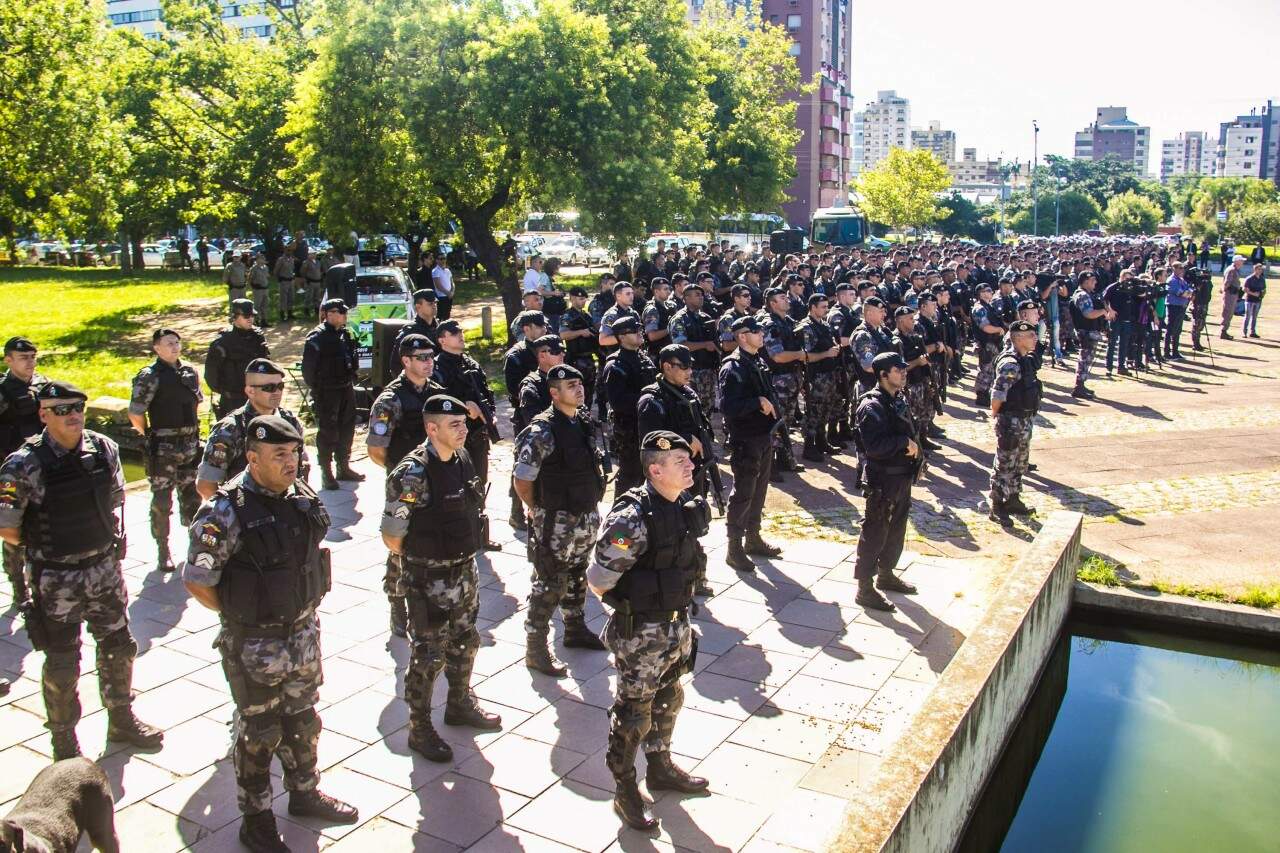 Apresentação de policiais que reforçarão a segurança em Porto Alegre (Foto: Jackson Ciceri/O Sul)