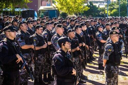 Apresentação de policiais que reforçarão a segurança em Porto Alegre (Foto: Jackson Ciceri/O Sul)