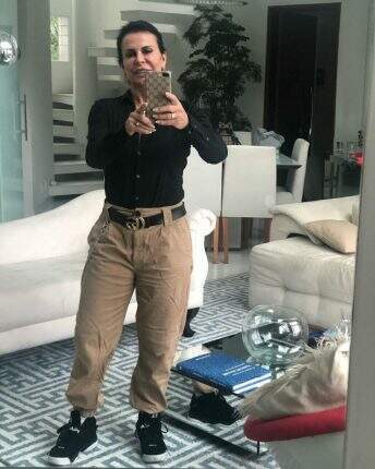 Na imagem, Gretchen aparece usando uma calça comprida, tênis, blusa de mangas e cabelos presos, um modelito bem diferente do que está acostumada a usar. “Tá parecendo um machinho kk Maria Odete”, disse uma seguidora da cantora.