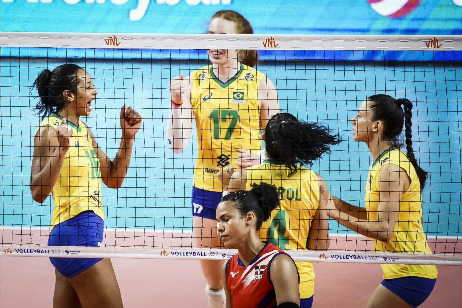 Foto: Reprodução/Twitter COBA seleção brasileira feminina de vôlei manteve 100% de aproveitamento na edição 2022 da Liga das Nações de Vôlei ao vencer a República Dominicana por 3 sets a 1 (parciais de 25-9, 16-25, 25-18 e 25-17) na noite desta sexta-feira (3) em Shreveport-Bossier City (Estados Unidos).