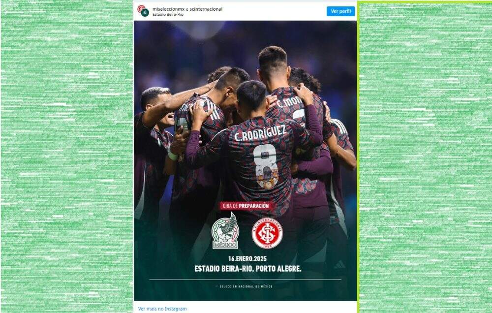 A seleção do México e o Inter divulgaram, na noite desta segunda-feira (30), que vão realizar um amistoso no dia 16 de janeiro, no Beira-Rio, em Porto Alegre. O jogo é tido pela seleção mexicana como uma preparação para a Copa do Mundo de 2026, e o clube brasileiro vai ser o primeiro rival dos mexicanos em um giro pela América do Sul.