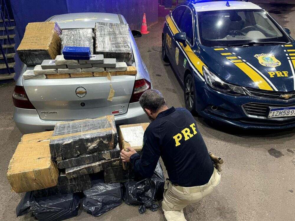 Sobre os assentos e no porta-malas do carro, os policiais encontraram diversos pacotes de drogas que totalizam 241 quilos de maconha, 10 quilos de pasta-base de cocaína e 6 quilos da droga em pó.