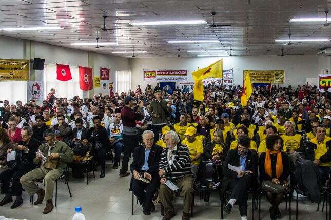 Porto Alegre – Movimento pela defesa da democracia e direitos humanos, ato realizado ,nacionalmente, por entidades sindicais e partidos políticos, em apoio ao governo Dilma Rousseff. Na Igreja Pompéia.FOTO – Jackson Ciceri