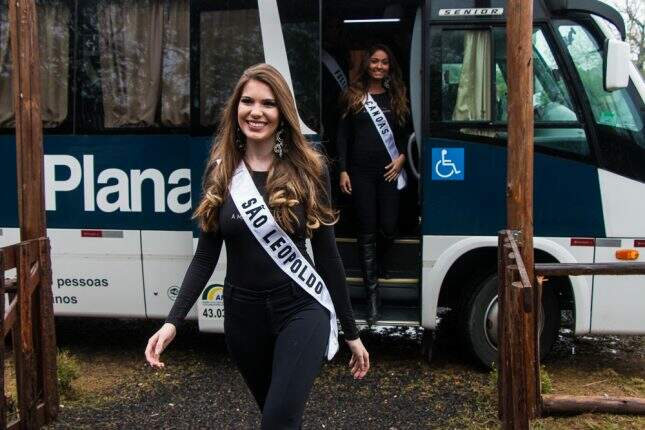 Porto Alegre – Candidatas ao título da Mais Bela Gaúcha 2015, juntas com patrocinadores e organizadores, no Piquete Pampa Schim, no Parque harmonia. – FOTO – Jackson Ciceri
