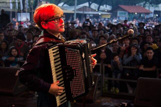 Porto Alegre – Tempo chuvoso não afasta os visitantes tradicionalistas para os Shows Pampeanos, artista Dudu Gaiteiro, no Parque Harmonia . FOTO Jackson Ciceri