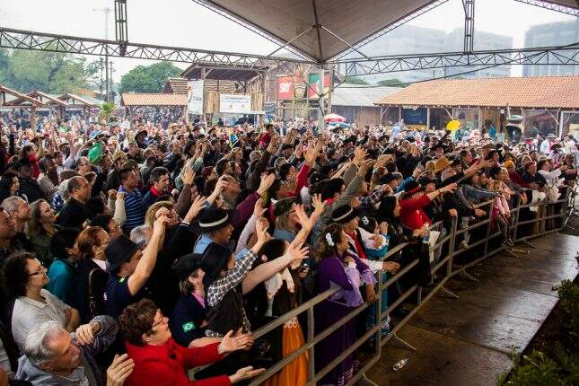 Porto Alegre – Tempo chuvoso não afasta os visitantes tradicionalistas para os Shows Pampeanos, artista Iedo Silva e Grupo A La Pucha, no Parque Harmonia com grande público . FOTO Jackson Ciceri