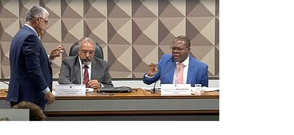O senador Eduardo Girão (Novo-CE) tentou entregar uma réplica de um feto ao ministro dos Direitos Humanos, Silvio de Almeida, durante uma audiência no Senado nesta quinta-feira (27).
