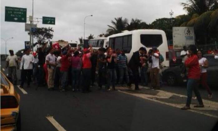A comitiva ficou presa em um engarrafamento na saída do terminal e o veículo onde os senadores estavam foi cercado por dezenas de partidários do governo, que bateram no veículo gritando: “Chávez não morreu, multiplicou-se”, em referência ao ex-presidente Hugo Chávez, morto em 2013. (Folhapress)