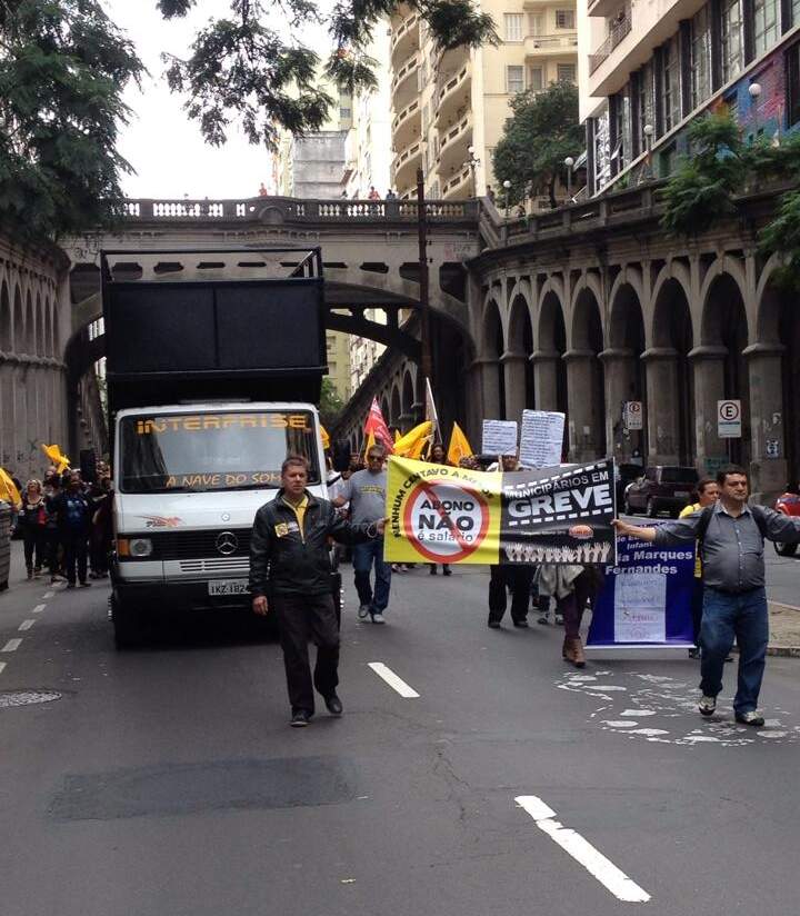 A greve dos municipários de Porto Alegre completou nesta terça-feira (26) uma semana. A categoria, que liberou o acesso ao prédio administrativo da prefeitura – bloqueado pelos servidores nos últimos dias –, realizou uma caminhada pelo Centro da Capital gaúcha nesta manhã.