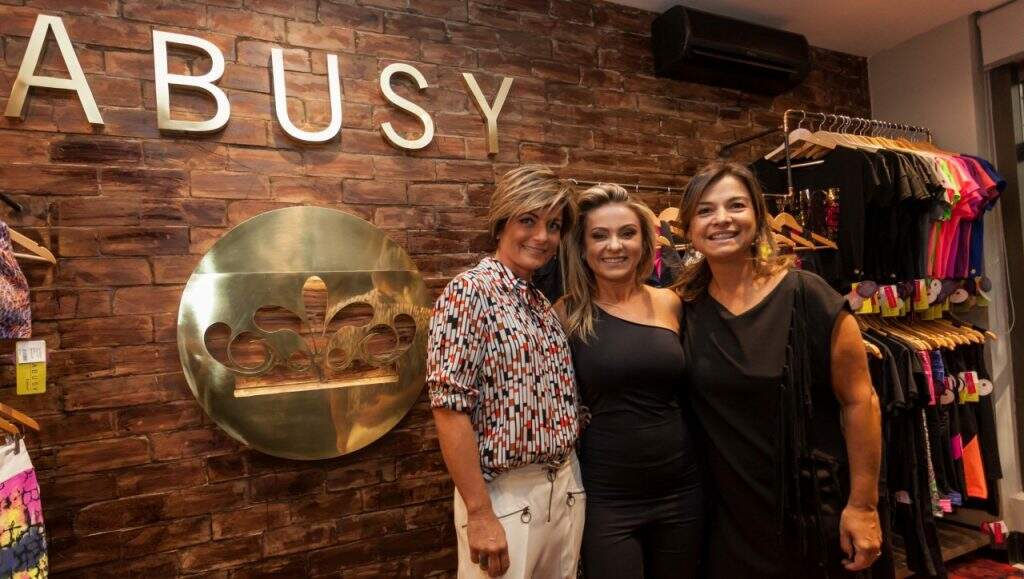 Simone Salazar, idealizadora da nova marca, entre Vivian Neuls e Roberta do Valle, recebeu no coquetel de abertura da Abusy. (Foto: Pedro Antonio Heinrich/especial)
