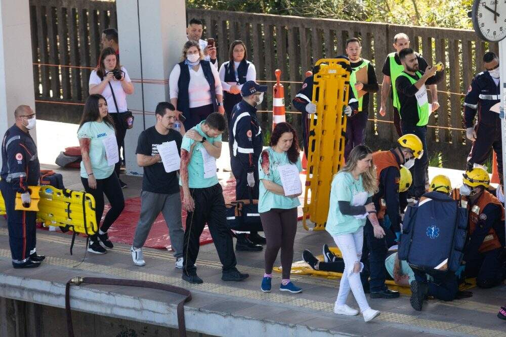 O Corpo de Bombeiros, a Defesa Civil, a Guarda Municipal e o Samu (Serviço de Atendimento Móvel de Urgência) realizaram, no domingo (18), um exercício simulado de emergência na estação Petrobras da Trensurb, em Canoas, na Região Metropolitana de Porto Alegre.