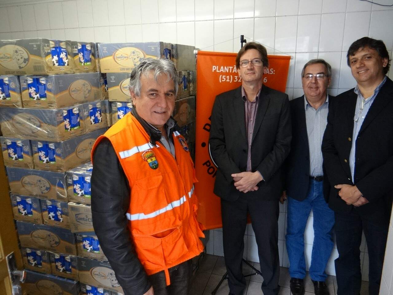 Mobilizados para ajudar as centenas de famílias de desabrigados no Rio Grande do Sul, um grupo de empresários uniu-se para integrar a campanha por donativos. Na manhã desta quinta-feira (15/10), o Sindicato da Indústria do Leite e Derivados do RS (Sindilat), a Associação Gaúcha dos Supermercadistas (Agas) e a empresa Orquídea realizaram doação de 5 mil litros de leite e 2 mil pacotes de biscoito à Defesa Civil. Também serão doados 500 pães por dia por meio da empresa Superpan. O presidente do Sindilat, Alexandre Guerra, salientou que a ação busca auxiliar a comunidade gaúcha, e que o sindicato trabalha para sensibilizar outras empresas e setores a unirem-se à campanha. “Iniciamos um chamamento entre nossos associados para mobilizar o empresariado e novos colaboradores. Essas famílias precisam da ajuda de todos nós”, frisou.