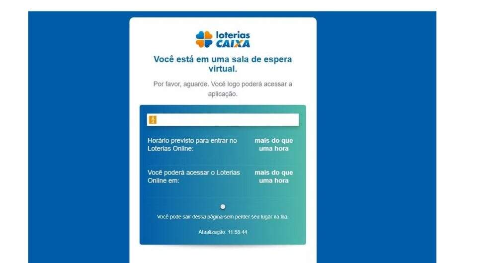 O site das Loterias Caixa, que permite apostas online nos jogos na Caixa Econômica Federal, voltou a apresentar uma fila de espera para clientes acessarem a plataforma nesta terça-feira (31).