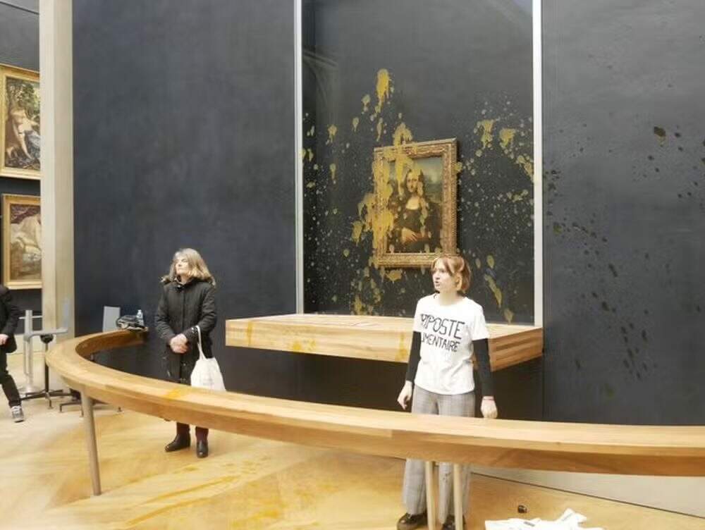Imagens de um vídeo mostraram duas mulheres jogando sopa vermelha na obra o que espantou o público no local. No registro, publicado pelo próprio perfil, as manifestantes se aproximam e jogam sopa no quadro. Elas, então, gritam: “O que é mais importante? A arte ou o direito a um sistema alimentar saudável e sustentável?”.
