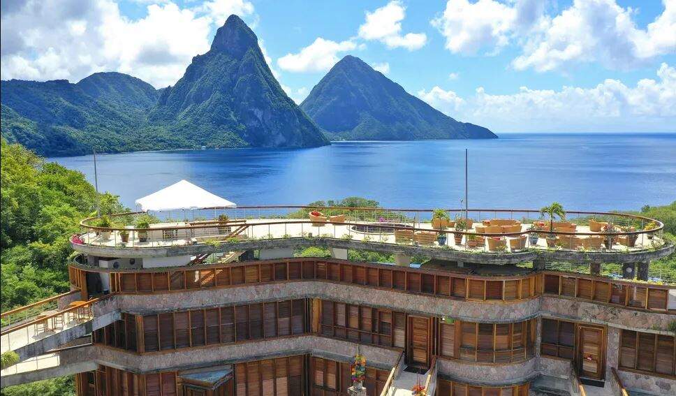 O resort “Montanha de Jade” é uma criação do arquiteto Nick Troubetzkoy, que projetou a construção na ilha de Santa Lúcia, no Caribe. Segundo a Forbes, a construção foi financiada pela fortuna herdada do negócio familiar de construção de ferrovias.