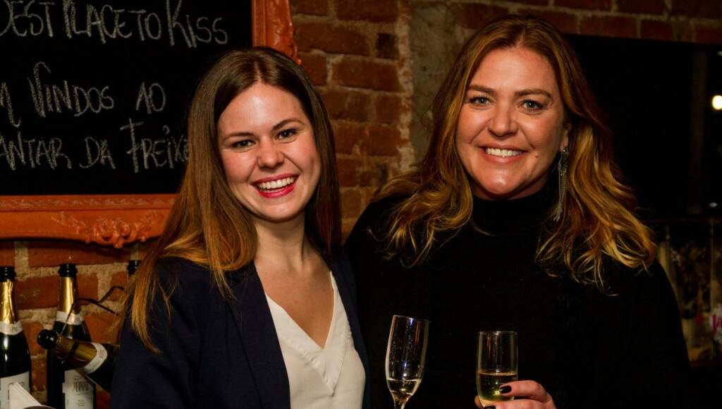 Miriam Moreno e Cátia Tedesco no jantar em que predominou o clima do “Dia dos Namorados”. Foi ocasião de provar um delicioso cardápio harmonizado com os rótulos especiais da Freixenet, no Scantinato di Peppo. (Foto: Pedro Antonio Heinrich/especial)