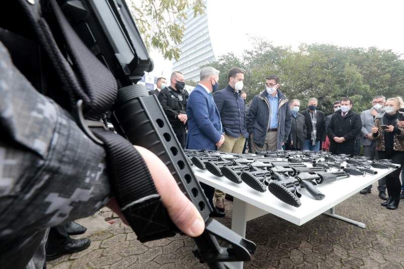 Foto: Itamar Aguiar/Palácio PiratiniO governo do RS entregou na manhã desta terça-feira (06), no Centro Administrativo Fernando Ferrari, em Porto Alegre, 20 fuzis, 150 espingardas e seis ônibus para a Susepe (Superintendência dos Serviços Penitenciários), vinculada à Secretaria da Administração Penitenciária.
