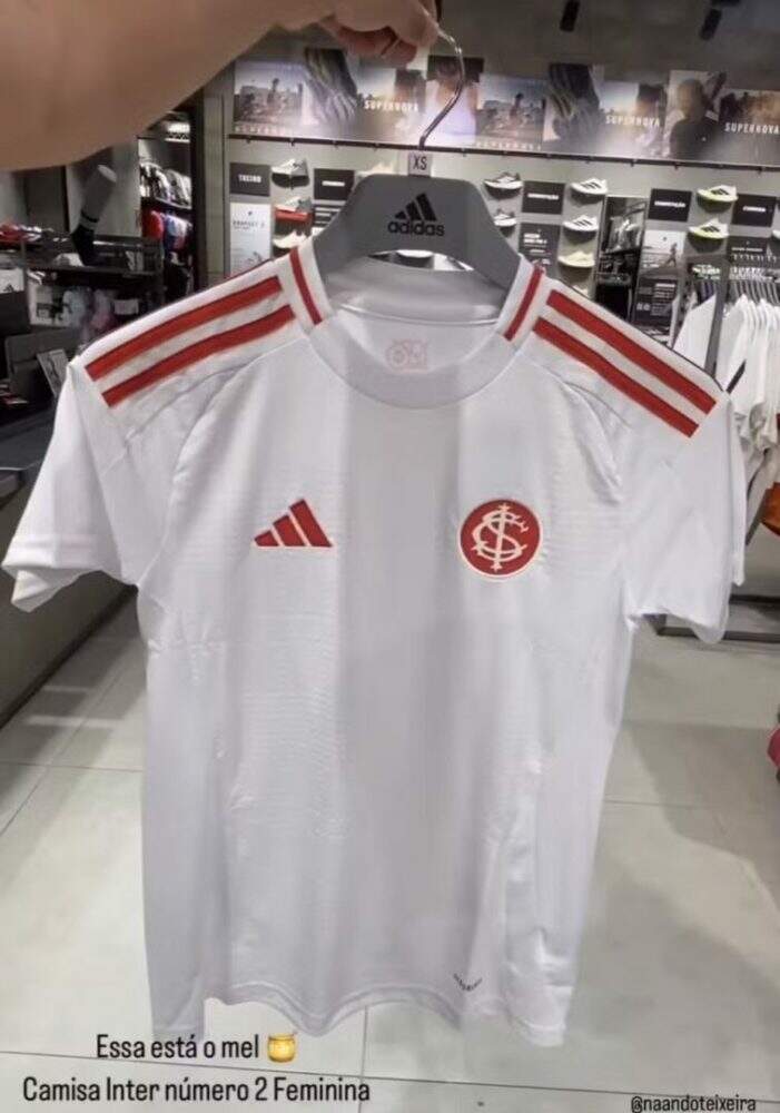 Um perfil de uma loja da fornecedora de material esportivo do Internacional vazou imagens do suposto segundo uniforme colorado para 2025. A camisa branca tem apenas as listras da Adidas em vermelho, além do escudo do Inter.
