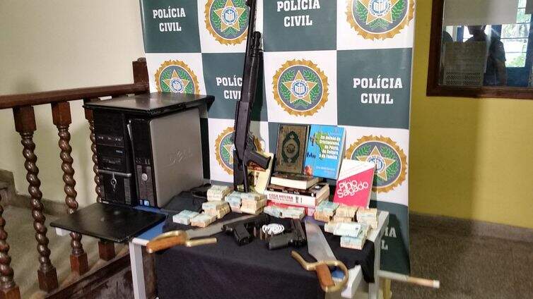 Armas, dinheiro e livros apreendidos em operação da polícia contra suspeito de ataque contra a produtora Porta dos Fundos