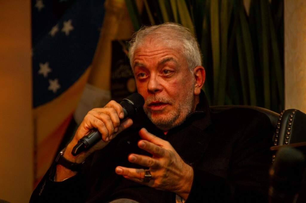 - Comentando suas criações, desmontou o original e sóbrio anel que usava. Trata-se uma joia puzzle, toda encaixada, e com riqueza de detalhes que permitem um perfeito ajuste das peças. A conversa transcorreu com relatos inteligentes durante o diálogo com Fernanda Pandolfi.