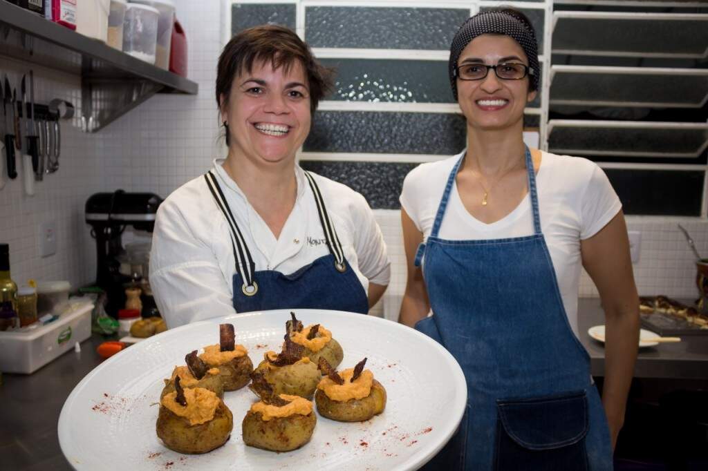 As chefs Belen Ruiz Montava e Biba Retamozo com as deliciosas batatas recheadas de bacalhau chouriceiro na nova edição do Jantar Ibérico. (Foto: Pedro Antonio Heinrich/especial)