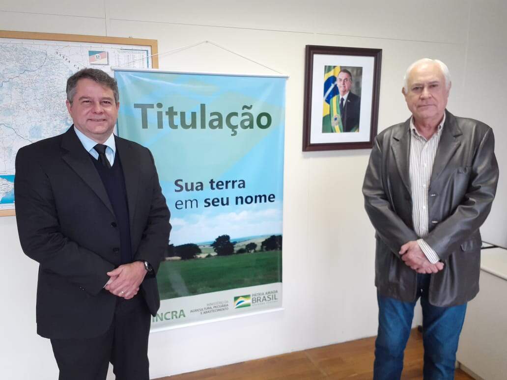 Santana do Livramento,é o município gaúcho com o maior número de assentamentos no Rio Grande do Sul. Na última sexta-feira, o Superintendente do INCRA (Instituto Nacional de Colonização e Reforma Agrária) no Estado, Tarso Teixeira reuniu-se em Porto Alegre com o vereador Marco Monteiro, daquele municipio. Na ocasião, o superintendente do INCRA avaliou que “a Divisão de Consolidação de Assentamentos, através do nosso Assistente de Conciliação Agrária, Rubem Brizola, está trabalhando com todo o empenho para que consigamos titular cerca de 60 assentamentos em todo o Estado até o final de 2020, dentre eles os assentamentos Cerro dos Munhoz e Apolo, em território santanense.” Tarso Teixeira dá destaque à participação de diversos setores da sociedade na concretização dessa proposta, e comentou que “o apoio das forças vivas da comunidade regional tem sido imprescindível para avançarmos no propósito de prover dignidade e cidadania aos assentados da reforma agrária. Essa é a diretriz do governo Bolsonaro e estamos firmes nessa direção”, afirmou no encontro.
