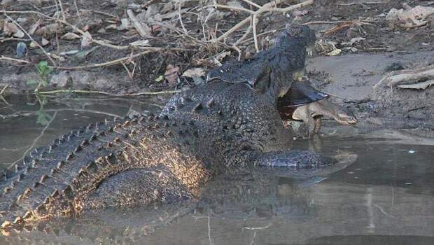 O australiano Chad Pickert flagrou o exato momento em que uma tartaruga escapou da poderosa mandíbula de um enorme crocodilo em um rio em Kakadu, na Austrália.